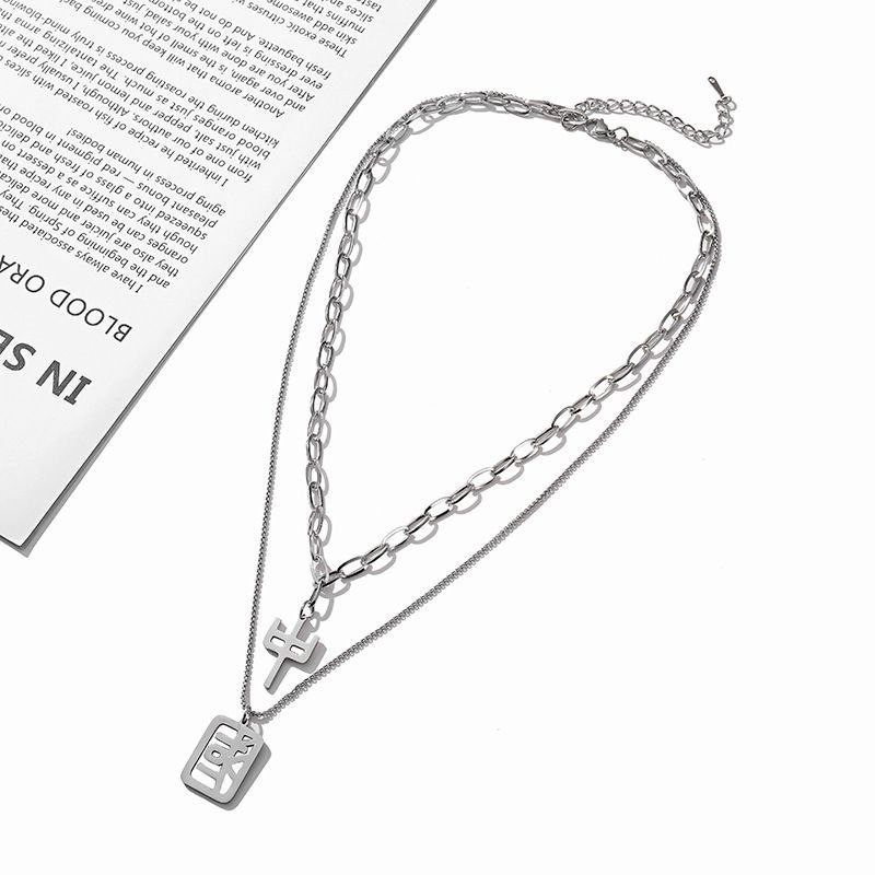 Collier en acier au titane Guochao Style chinois Mode Chandail à double couche Chaîne de chandail Tempérament Polyvalent Hommes et femmes