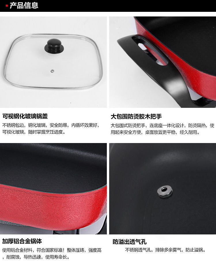 Double bonheur multifonctionnel ménage antiadhésif carré pot dortoir électrique marmite coréen barbecue électrique
