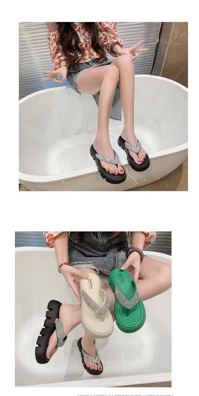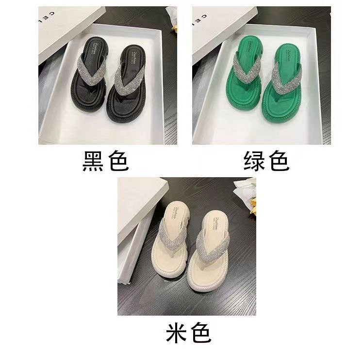 nouvelles tongs d'été style coréen tongs en strass plage à semelles épaisses à semelles souples sandales décontractées pour femmes