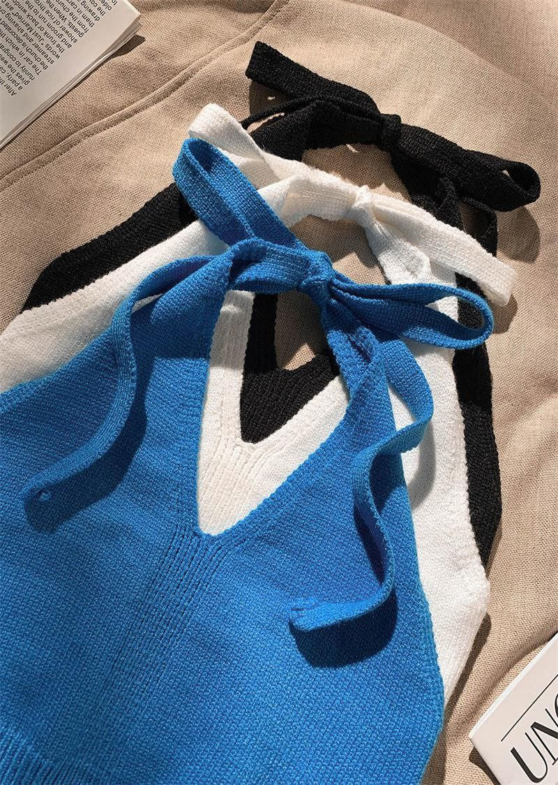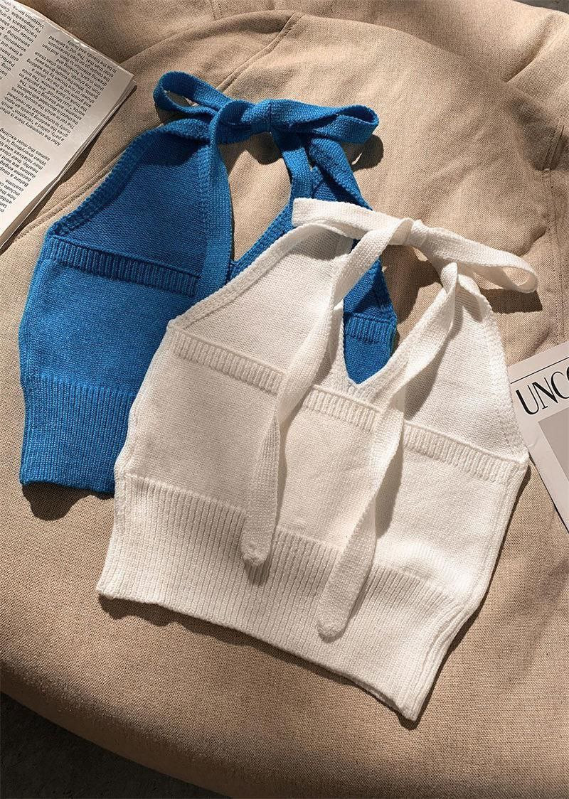 Haut tricoté à couche intérieure de niche pour femmes, bretelles à col licou, pour vêtements d'été, gilet court à bretelles blanches