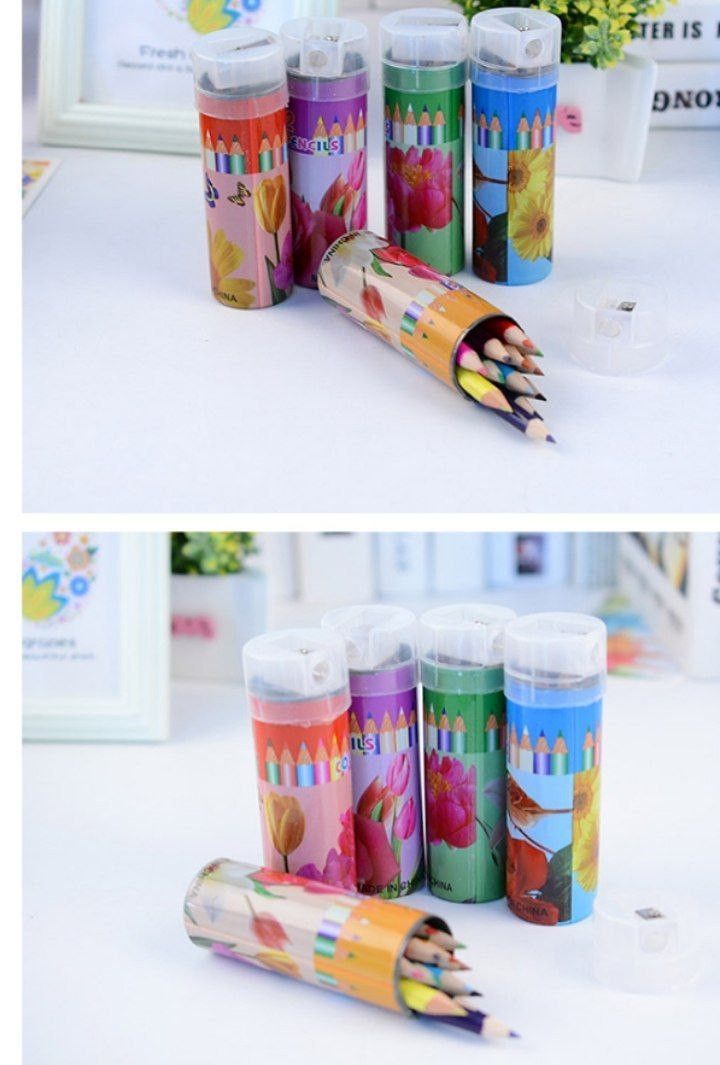 12 couleurs de crayons de couleur, crayons de peinture en tube de dessin animé, papeterie d'apprentissage pour élèves du primaire, stylos à colorier