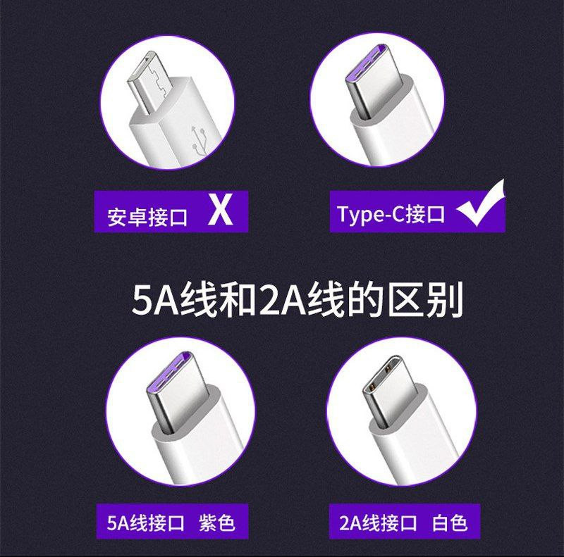 L'interface de type C du câble de données 5A à charge ultra rapide convient au câble de données Xiaomi Huawei Mate10/20 P20/30