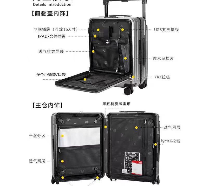 Valise d'affaire d'exportation de 20 et 24 pouces à ouverture frontale pour ordinateur, valise d'embarquement pour homme, valise de chariot large à ouverture latérale