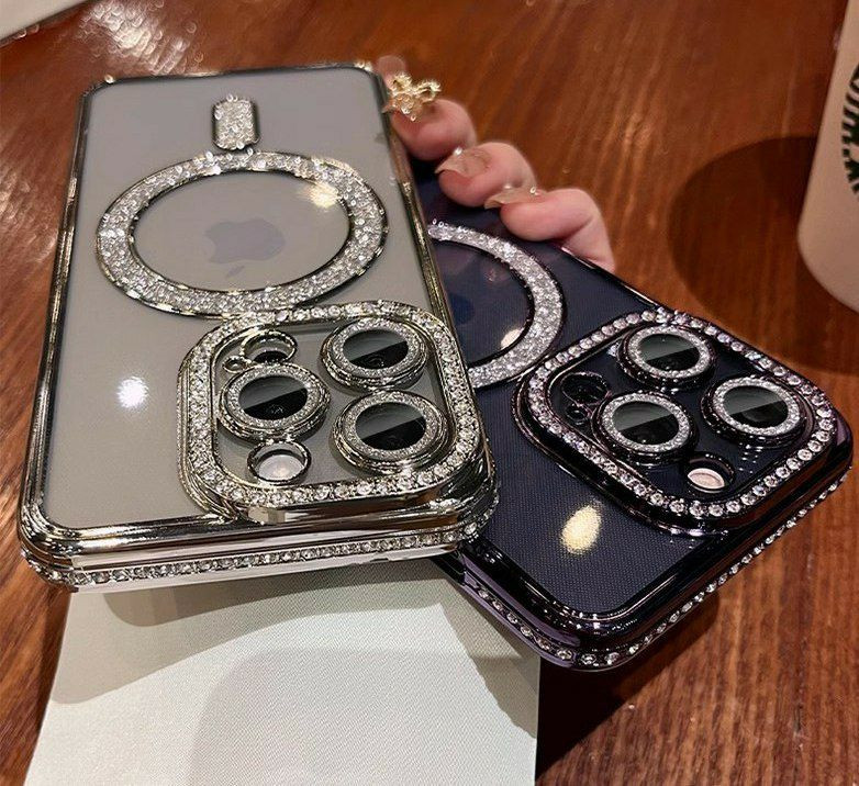 Coque applicable à l'iPhone 11 a 16pro Max  Flash Powder Magnétique Aspiration Mobine Phone Phinestone Inclay Inclusion Full-incluse Apple  Case de protection