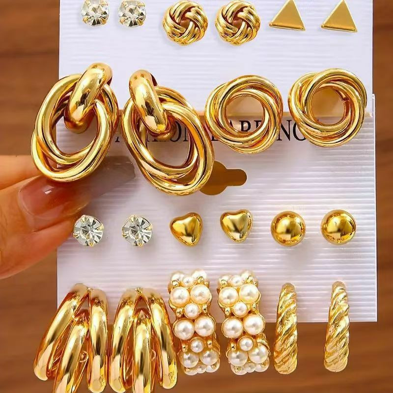 Un ensemble de 12 et 11 paires de boucles d'oreilles en alliage de zinc, résine métal ornées de perles