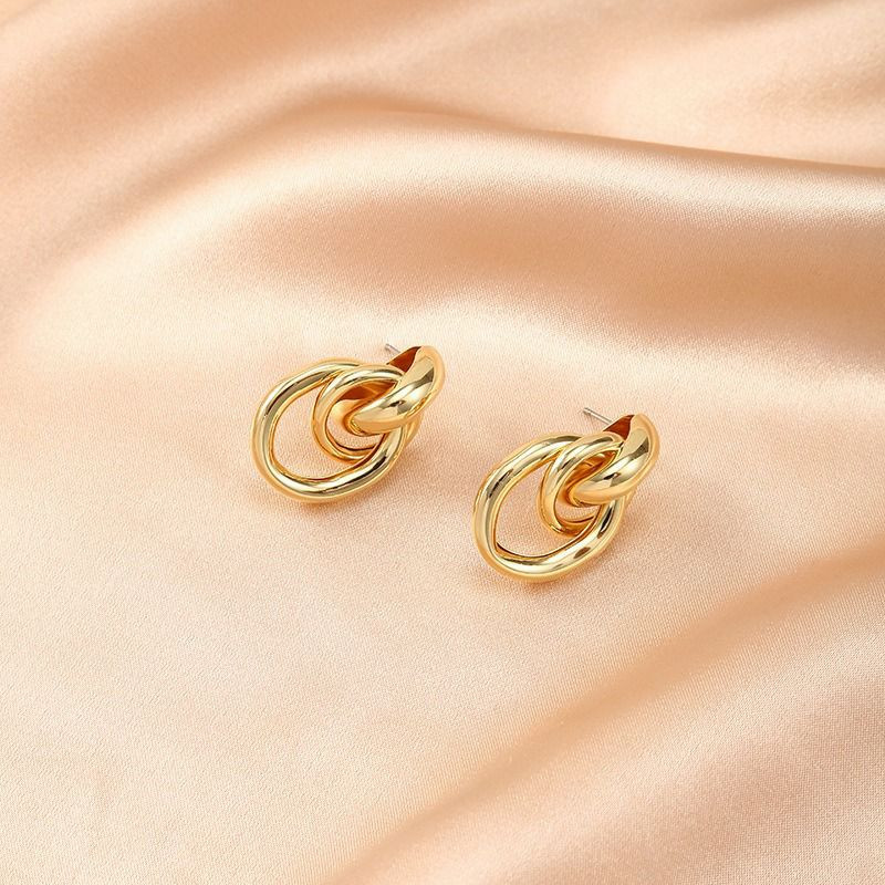 Boucles d'oreilles légers de luxe légers simples, boucles d'oreilles creuses tempérament cercle d'enroulement multicouche en or, glamour luxueux, uniques, tendance, élégantes