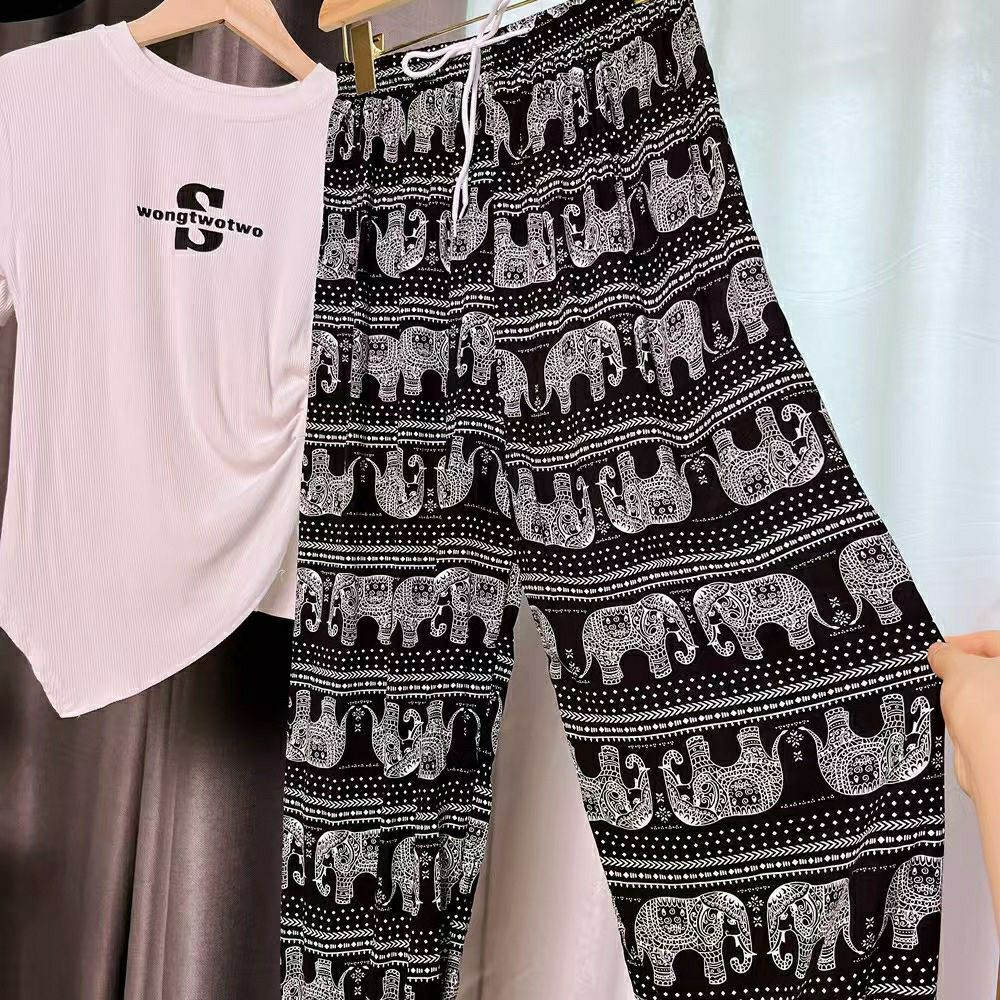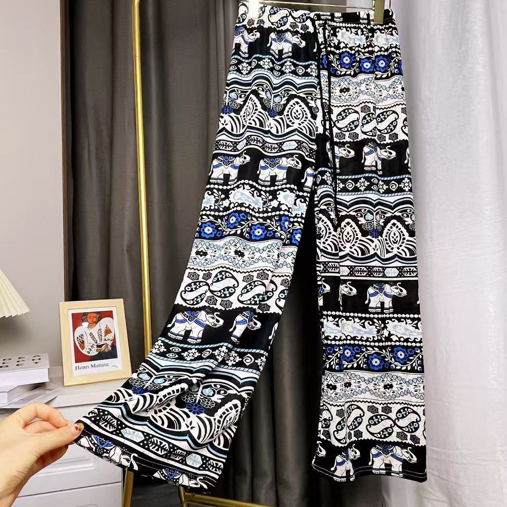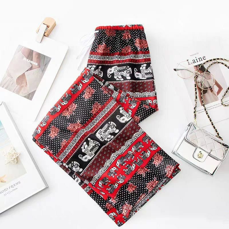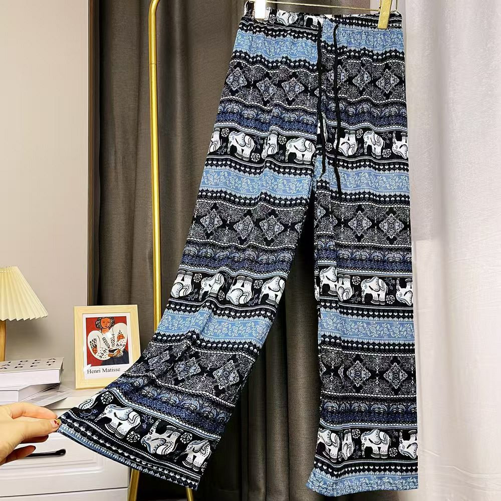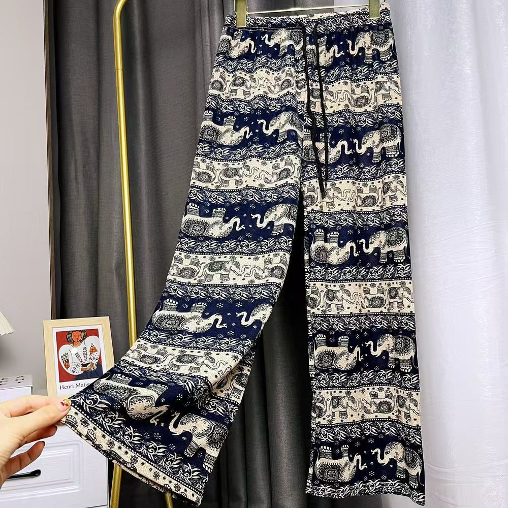 Pantalon large à jambes larges en forme d'éléphant ethnique thaïlandais d'Asie du Sud-Est pour femmes en été, pantalon droit ample, fin et taille haute, pantalon à la mode et polyvalent