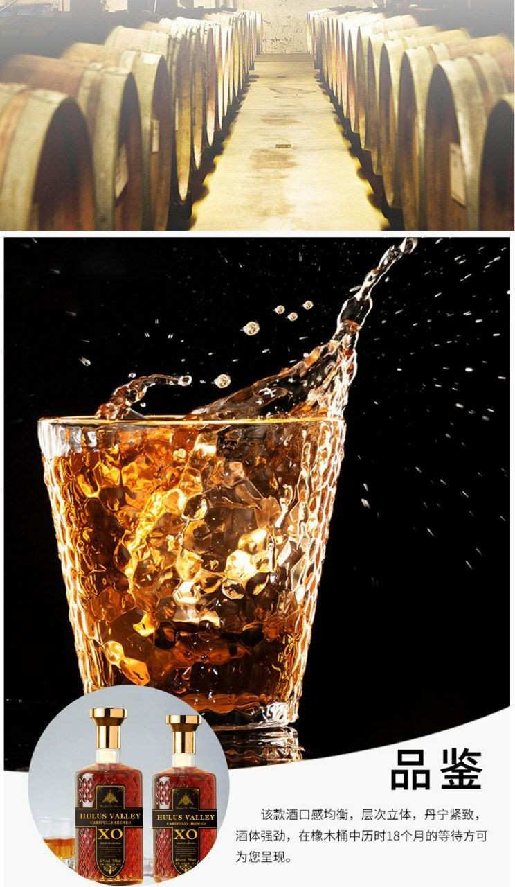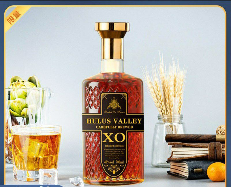 Bouteilles de cognac XO Hulusi Valley, une boisson alcoolisée.