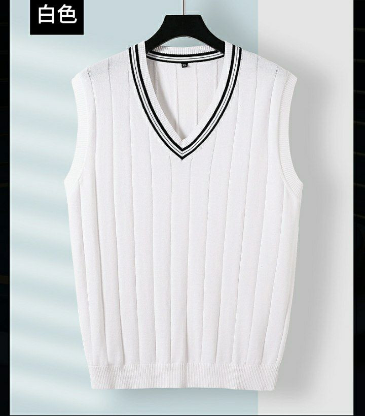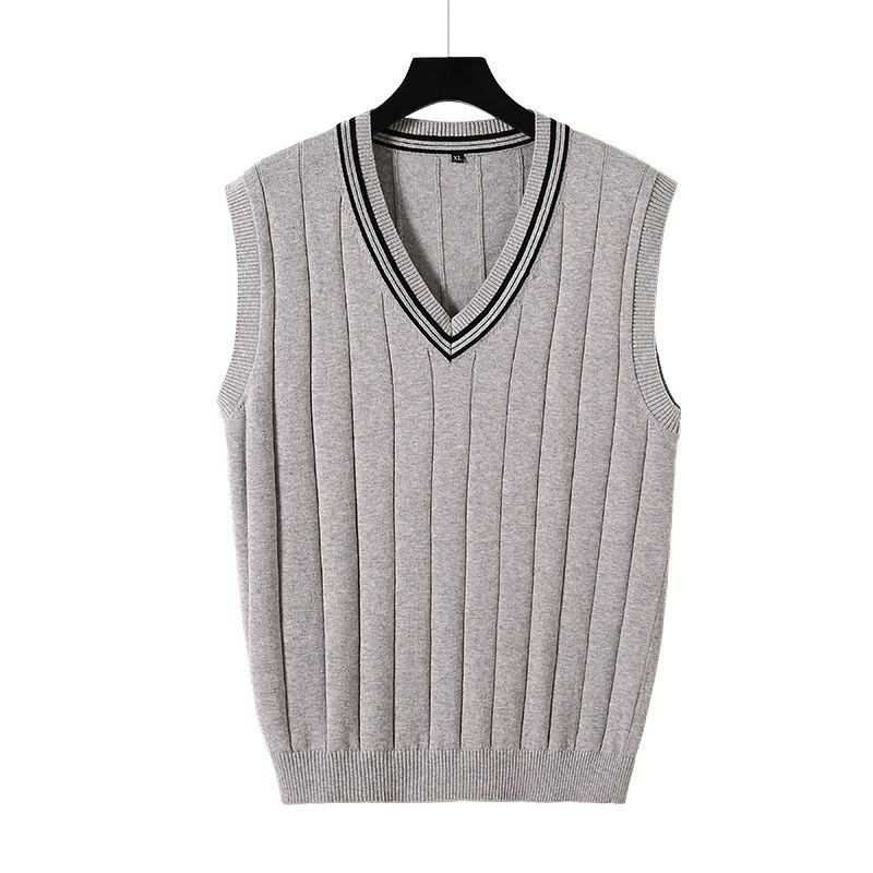 pull gilet hommes mince coton sans manches col en v couleur unie pull